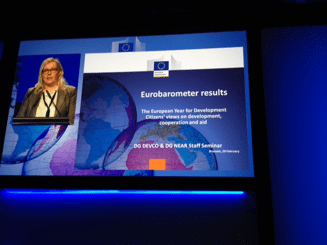 It fell upon Stina Soewarta to present some key findings of the recent post-EYD2015 Eurobarometer survey. She is the Head of Unit for Transparency & Communications in DG DEVCO and had been in charge of all the practical organisation of the European Year and the communication aspects. While a number of men (including myself) are laying claim on the distinction of having been the “Godfather of the European Year”, nobody disagrees that Stina was the “fairy Godmother” of that year, the woman who nurtured it and made it grow.